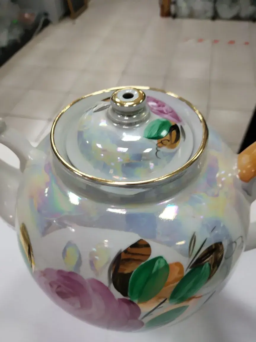 Чайник большой доливной.Роза. ручная роспись.Дулево