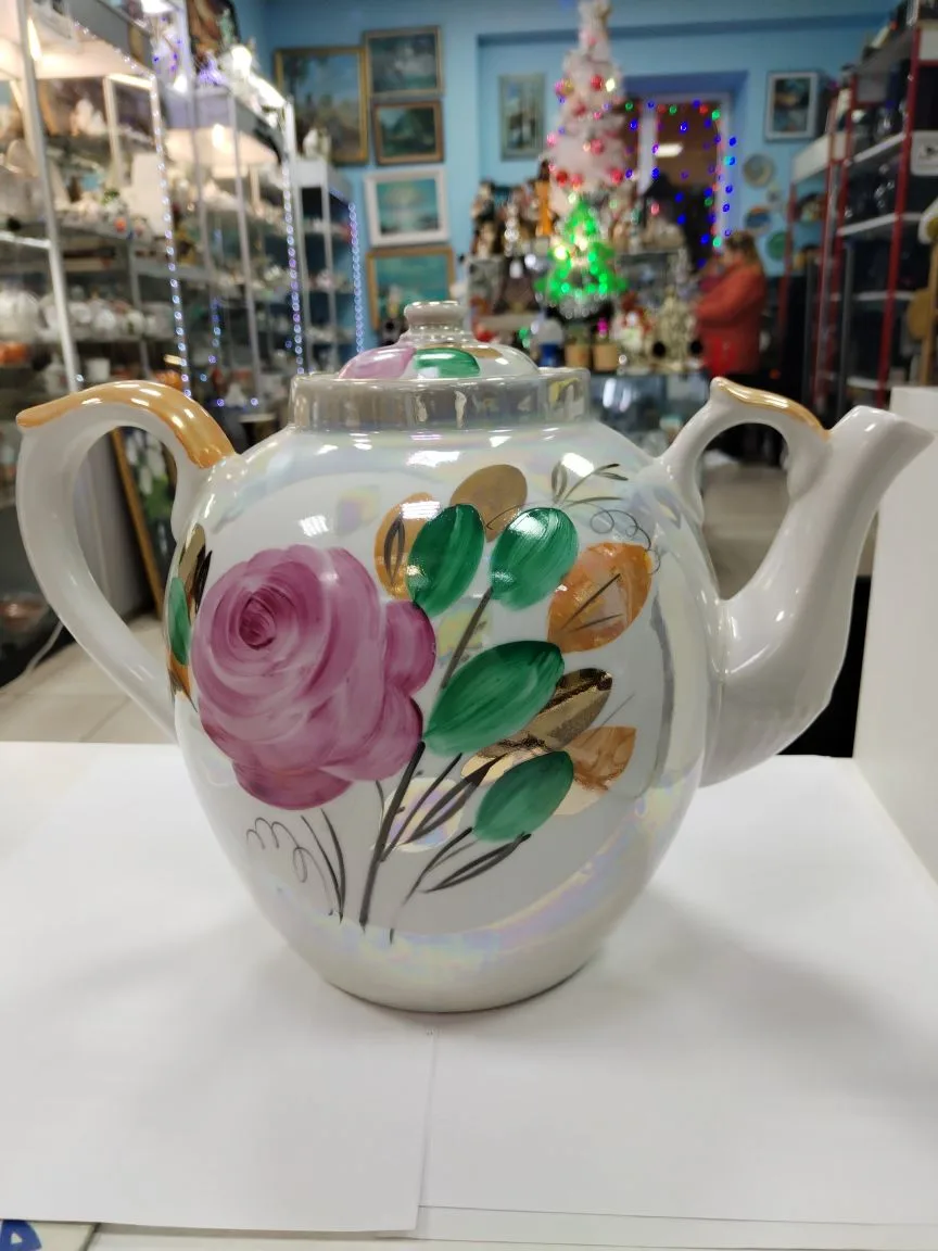 Чайник большой доливной.Роза. ручная роспись.Дулево.3.5 л