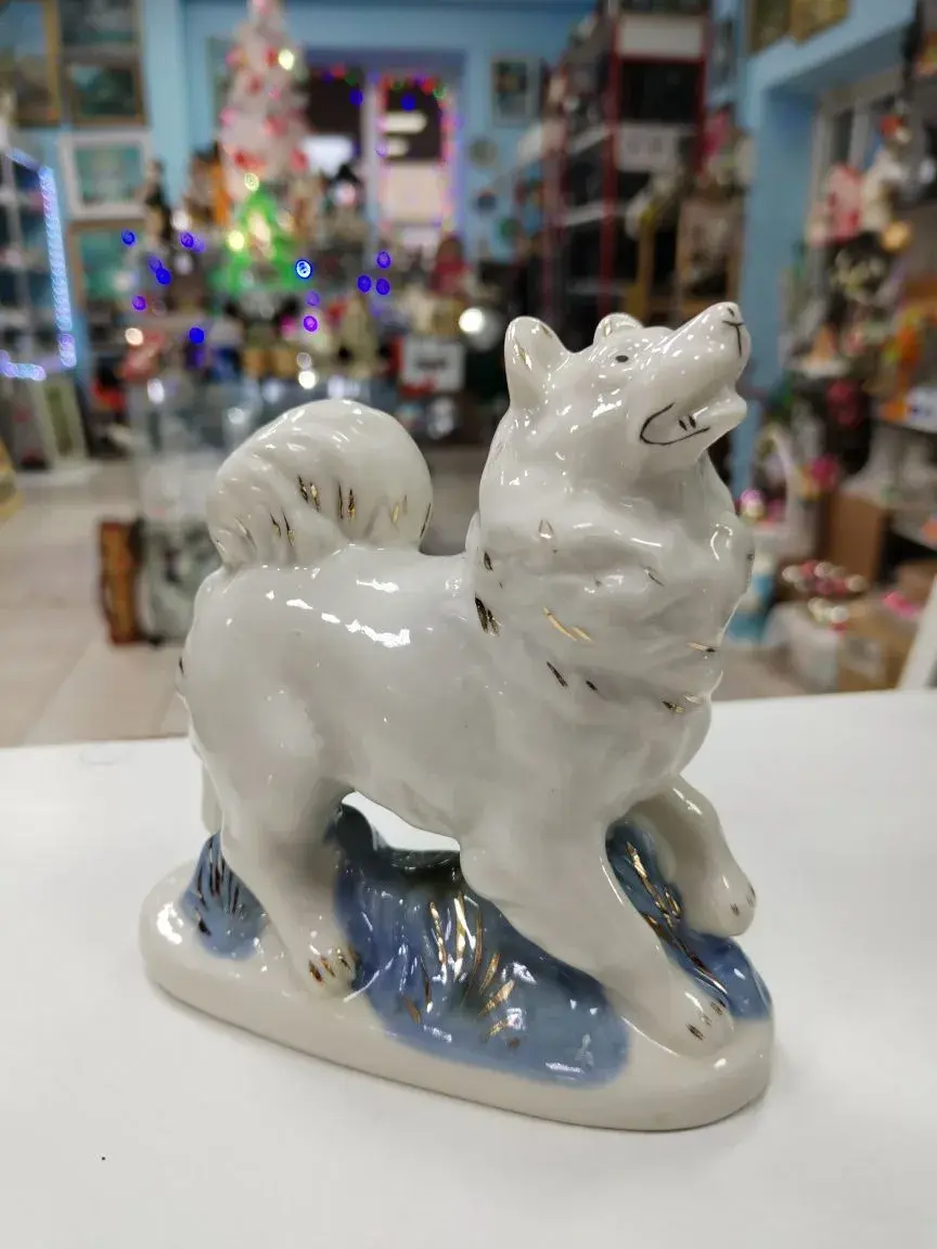Винтажная фарфоровая статуэтка «Лайка», СССР, 1950-е годы