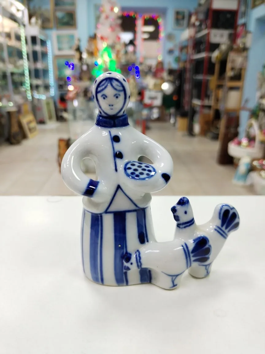 Статуэтка "Птичница", автор формы Квитницкая Н.Б. гжель. 50г